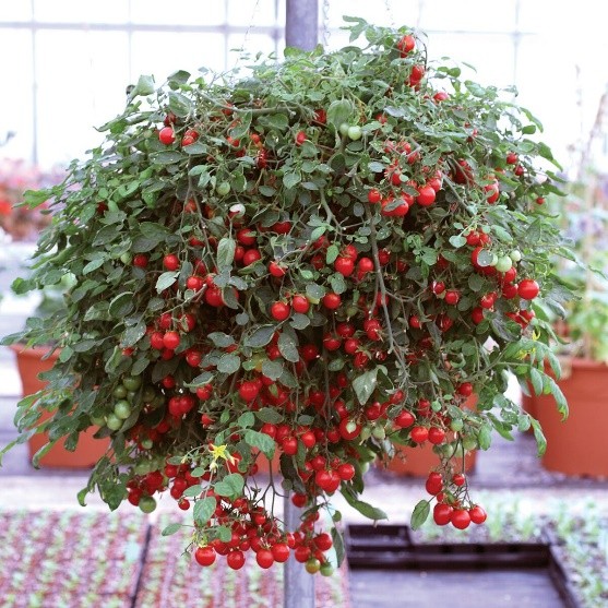 Balkontomāti – ķirštomāti, nokareni, sarkani, apaļi, ar teicamu garšu, agri, krūmveida,  kompakti, determinanti. Audzējami iekaramajos podos, kastēs, mucās. Stāds 14cm podiņā.